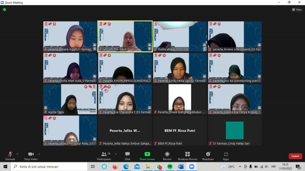 TM (Technical Meeting) Pada hari Rabu, 8 Maret 2022 pukul 18.30-20.00 WIB dengan menggunakan media Zoom Meeting. Saat dilakukannya TM MC menjelaskan tata tertib test, persyaratan mengikuti test, serta memberikan format ppt yang akan digunakan untuk tes persentasi.