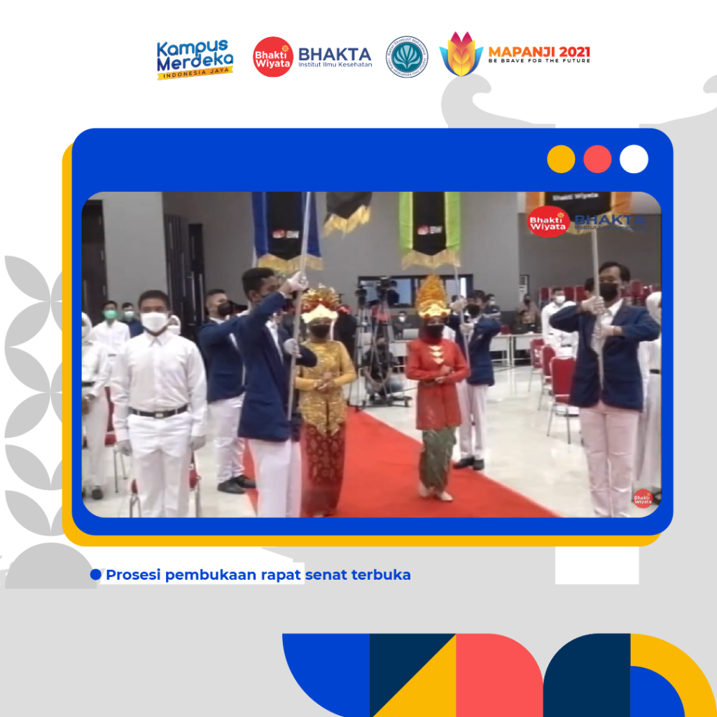 Senin, 20 September 2021 hari pertama pelaksanaan PKKMB 2021 yang merupakan pengukuhan mahasiswa baru. Kegiatan ini diawali dengan pembukaan rapat senat terbuka mahasiswa baru Institut Ilmu Kesehatan Bhakta tahun ajaran 2021/2022. Masuk ke acara inti yaitu pengukuhan mahasiswa baru Institut Ilmu Kesehatan Bhakta tahun ajaran 2021/2022 yang diikuti dengan khidmat oleh seluruh mahasiswa baru secara virtual maupun perwakilan dari setiap program studi yang hadir di gedung graha lt.4 Institut Ilmu Kesehatan Bhakta. Setelah resmi pengukuhan kemudian dilanjutkan dengan pemasangan almamater dan id-card secara simbolis kepada perwakilan mahasiswa baru oleh Rektor Institut Ilmu Kesehatan Bhakta. Prof. Dr. apt. Muhamad Zainuddin dan di ikuti oleh seluruh mahasiwa baru. Prof. Dr. apt. Muhamad Zainuddin juga memberikan pidato selamat datang kepada mahasiswa baru yang mana beliau juga menyampaikan bahwa pembelajaran diInstitut Ilmu Kesehatan Bhakta ini dilandaskan 4 pilar, yaitu ada Extrakulikuer, Intrakulikuler, Cokulikuler dan Sosiokulikuler. Setalah penyampaian sambutan dari pihak kampus juga ada sambutan dari Bapak Menteri Pendidikan dan Kebudayaan RI yaitu dari Bapak Nadiem Makarim. Kemudian, dilanjutkan sambutan oleh Presiden Mahasiwa dari saudari Delia Salsabila yang merupakan mahsiswi dari S1 Kedokteran Gigi. Setelah sesi sambutan selesai, dilanjutkan dengan penayangan dan pemaparan struktural civitas akademik Institut Ilmu Kesehatan Bhakta. Di penghujung acara pengukuhan tak kalah menariknya ada pula sambutan dari Bapak Walikota Kediri yaitu Bapak Abdullah Abu Bakar ,yang menyampaikan pidatonya terkait vaksinasi dan wacana terkait pemberlakuan tatap muka bagi pelajar atau mahasisawa di Kota Kediri.