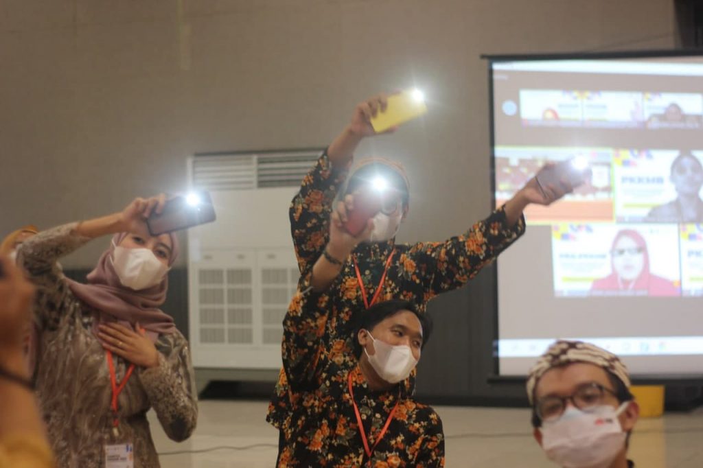 Di tengah tengah seriusnya acara  , panitia PKKMB 2021 mengajak seluruh mahasiwa baru untuk menggerakkan anggota badan dengan  senam dan jargon yang dipandu langsung oleh panitia di Graha Lt. 4 Institut Ilmu Kesehatan Bhakta