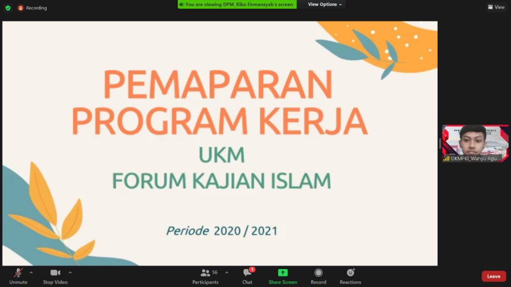 Bapak Indra Cahyadinata, SSt. FT, M.Kes beliau menyampaikan “ saya harap Pemaparan Program Kerja yang sudah disusun dapat menjadi acuan untuk kegiatan 1 tahun kedepan. Selain itu proker yang sudah disusun bisa kita laksanakan ditengah pandemi. Terutama UKM yang berhubungan dengan olahraga. Karena tidak bisa dilaksanakan secara offline maka UKM harus memiliki kreatifitas agar UKM tetapberjalan. Tujuan diadakannya UKM tidak hanya mengisi waktu luang saja tapi juga dapat membentuk pusat prestasi.”