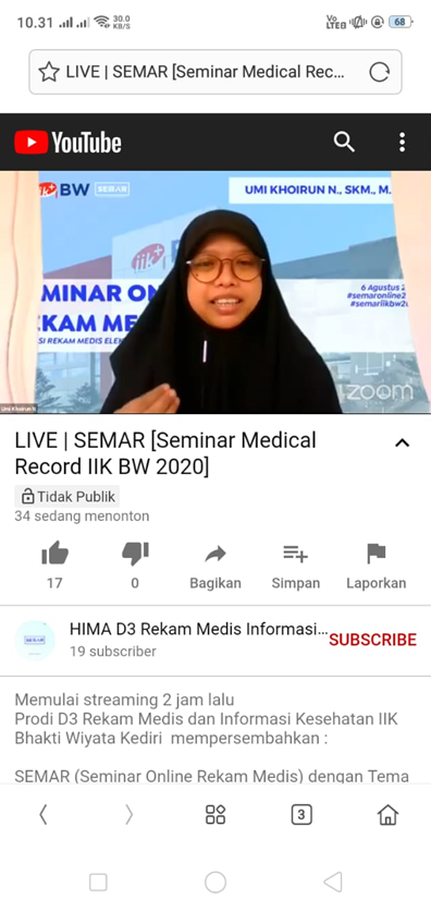 HIMA D3 RMIK IIK BHAKTI WIYATA KEDIRI MENGADAKAN SEMAR [SEMINAR MEDICAL RECORD] 2020