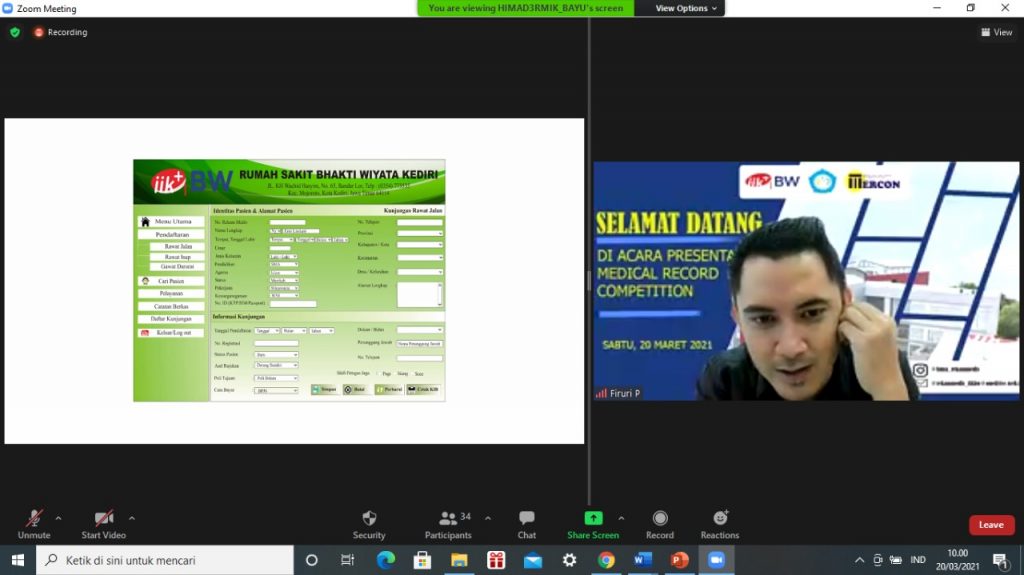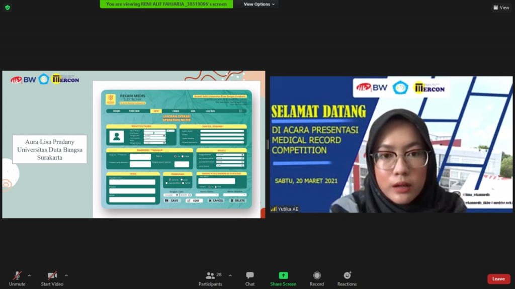 Acara Presentasi Medical Record Competition ini dilaksanakan pada tanggal 20 Maret 2021 dan dihadirkan oleh 3 juri yang akan menilai karya dari 10 finalis lomba desain formulir elektronik.