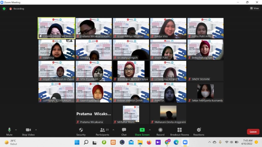 HIMPUNAN MAHASISWA D3 REKAM MEDIS DAN INFORMASI KESEHATAN telah melakukan kegiatan Open Recruitment yang diadakan secara daring melalui via zoom serta diselenggarakan pada tanggal : Pendaftaran & Pengumpulan Berkas : 29 Maret – 08 April 2022 Tes tulis : 09 April 2022 Tes wawancara : 10 April 2022 Pengumuman : 10 April 2022 Persyaratan dalam mengikuti recruitment, yaitu Foto memakai jas almamater IIK dengan background merah Mengisi formular pendaftaran Wajib follow akun Instagram HIMA D3 RMIK Membuat video perkenalan peserta serta twibbon dan di upload melalui Instagram Mahasiswa aktif Program Studi D3 Rekam Medis & Informasi Kesehatan Tingkat 1 Mengikuti alur dan mematuhi peraturan kegiatan selama Open Recruitment HIMA berlangsung Kegiatan Open recruitment HIMA D3 RMIK bertujuan untuk membentuk kader – kader yang memiliki sifat kepemimpinan serta mengembangkan bakat dan kreatifitas dengan kualitas Sumber Daya Manusia yang memiliki kepribadian baik Dalam kegiatan ini Pengurus lama mengharapkan bisa merangkul mahasiswa/mahasiswi Program Studi D3 RMIK untuk menjadi regenerasi pemimpin HIMA kedepannya serta dengan adanya keanggotaan baru yang bertanggung jawab dan terampil. Oleh karena itu, Dengan penyelenggaraan kegiatan ini untuk lebih meloyalitaskan peserta dan kinerja HIMA D3 RMIK dalam melaksanakan dedikasi pengurus HIMA D3 RMIK periode 2021 – 2022.HIMPUNAN MAHASISWA D3 REKAM MEDIS DAN INFORMASI KESEHATAN telah melakukan kegiatan Open Recruitment yang diadakan secara daring melalui via zoom serta diselenggarakan pada tanggal :