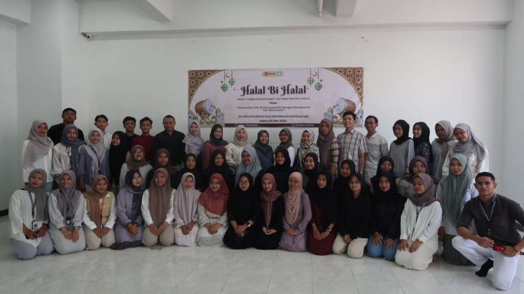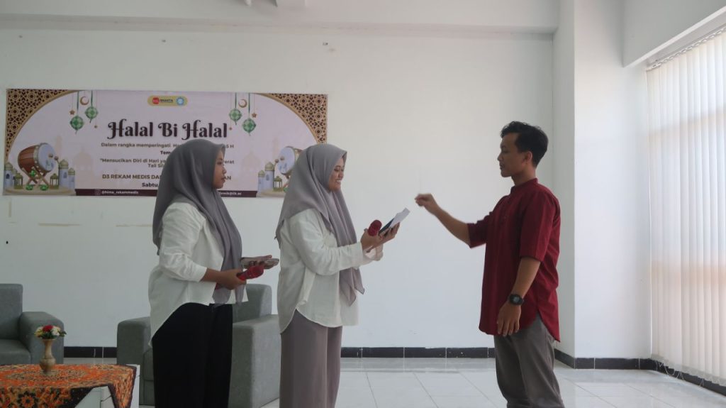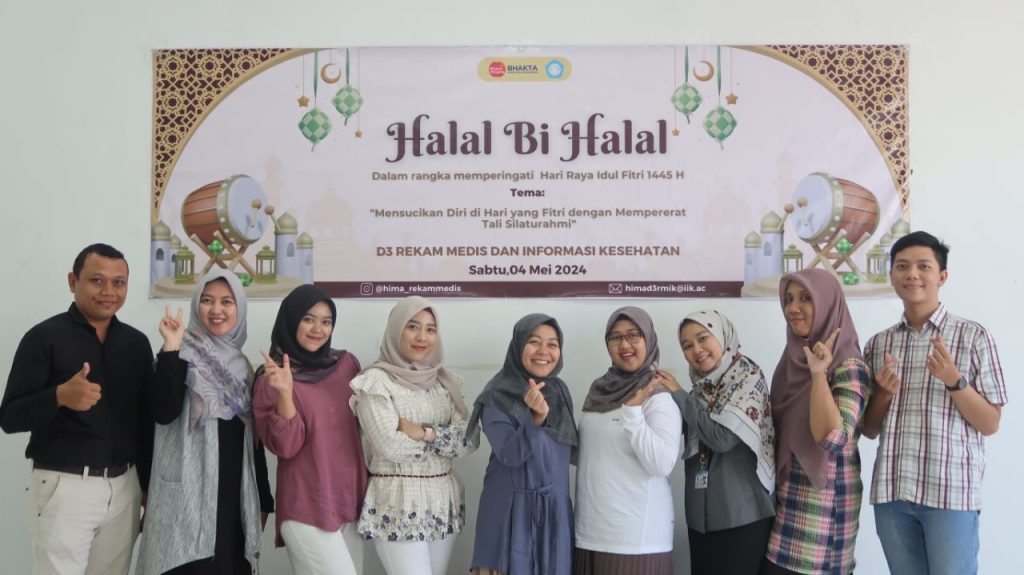 Himpunan Mahasiswa D3 Rekam Medis dan Informasi Kesehatan menyelenggarakan kegiatan Halal Bihalal 2024 dalam rangka mempererat kedekatan antar mahasiswa D3 Rekam Medis dan Informasi Kesehatan yang dilaksanakan pada hari Sabtu, 04 Mei 2024 yang berlokasi di ruang A501 Lt 5. Kegiatan Halal Bihalal 2024 bertema “Mensucikan Diri di Hari yang Fitri dengan Mempererat Tali Silaturahmi” dengan maksud melalui kegiatan ini dapat dijadikan sebagai bahan intropeksi diri untuk saling memaafkan antar mahasiswa maupun mahasiswa dengan dosen.