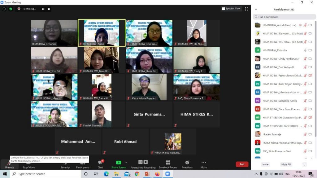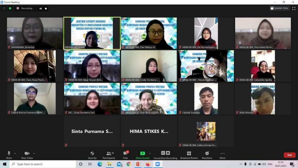 Tepat pada hari Sabtu, 16 Januari 2021 pada pukul 13.00 melalui media Zoom acara diskusi dimulai. Acara dibuka dengan sambutan dari ketua pelaksana proker Sharing Profile Virtual. Kemudian pukul 13.54 dilanjutkan dengan acara pemaparan informasi oleh Stikes Bina Usada Bali.