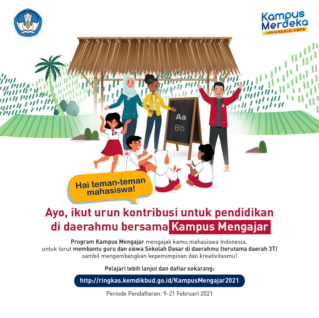 Baru-baru ini Kemdikbud meluncurkan program terbarunya, yaitu Kampus Mengajar. Apaan sih ini? ini merupakan bagian dari program Kampus Merdeka yang bertujuan untuk memberikan kesempatan kepada mahasiswa belajar dan mengembangkan diri melalui aktivitas di luar kelas perkuliahan. Di program kampus mengajar, mahasiswa akan ditempatkan disekolah dasar di seluruh Indonesia dan membantu proses belajar mengajar di sekolah tersebut. Program ini memberikan kesempatan agar Kamu dapat mengembangkan dirimu, khususnya kreativitas, kepemimpinan, dan kemampuan interpersonal lainnya melalui pengalaman ini.