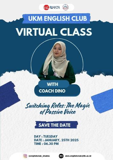 Pada hari Selasa, 25 Januari 2025, UKM English Club mengadakan pertemuan rutin dengan tema menarik dan edukatif yaitu “Switching Roles: The Magic of Passive Voice”. Kegiatan ini bertujuan mengenalkan dan melatih penggunaan kalimat passive voice secara kreatif dan menyenangkan melalui berbagai aktivitas interaktif. Tema “Switching Roles” mengajak peserta untuk mengubah sudut pandang dalam kalimat, dari pelaku (active voice) menjadi penerima aksi (passive voice). Melalui berbagai permainan dan simulasi, anggota English Club diajak memahami bahwa passive voice bukan hanya soal struktur kalimat, tapi juga cara melihat peristiwa secara berbeda. Kegiatan berlangsung seru, interaktif, dan penuh canda tawa. Setiap kelompok menampilkan kreativitasnya dengan cara unik saat memainkan peran dan menyusun kalimat pasif. Dokumentasi lengkap dapat dilihat di akun Instagram dan media sosial English Club.