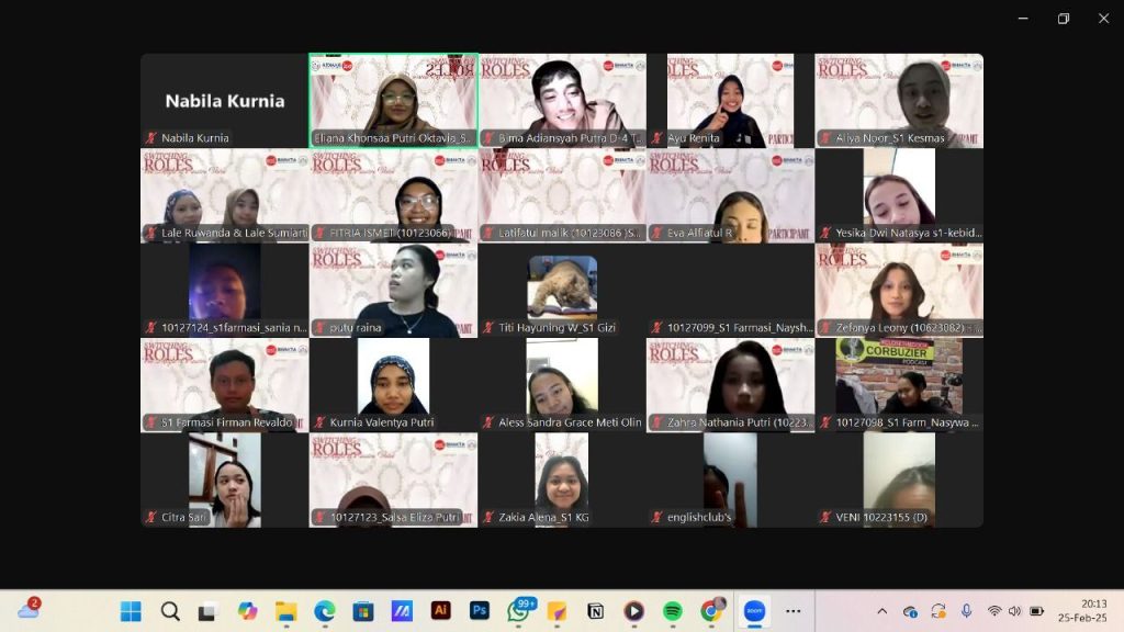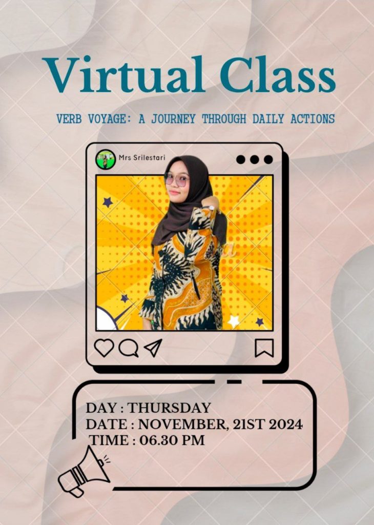 Pelaksanaan kegiatan dari program kerja Pertemuan Rutin dimulai pada tanggal 21 November 2024 dengan tema berjudul “Verb Voyage : A Journey Through Daily Actions“. Kegiatan ini berlangsung secara online melalui zoom pukul 18.30 hingga 20.00 WIB. Kegiatan ini bertujuan untuk mengajak anggota menjelajahi berbagai kata kerja (verb) yang biasa digunakan dalam aktivitas sehari-hari melalui latihan yang interaktif dan menyenangkan. Kegiatan berjalan lancar, seru, dan penuh tawa. Semua peserta terlibat aktif dan menunjukkan peningkatan kepercayaan diri dalam menggunakan bahasa Inggris. Dokumentasi kegiatan dapat dilihat di media sosial English Club.