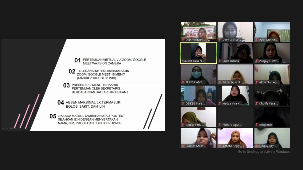 - Toleransi keterlambatan join zoom 15 menit (masuk pukul 18.30 WIB)